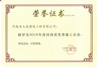 "中國建筑業最具成長性百強企業"、"全國優秀施工企業"、"河南省建筑業綜合實力前20強"、全國建筑業精品網站