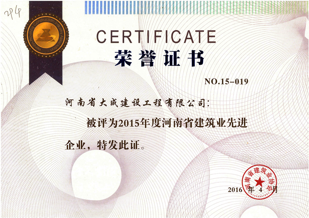 "中國建筑業最具成長性百強企業"、"全國優秀施工企業"、"河南省建筑業綜合實力前20強"、全國建筑業精品網站