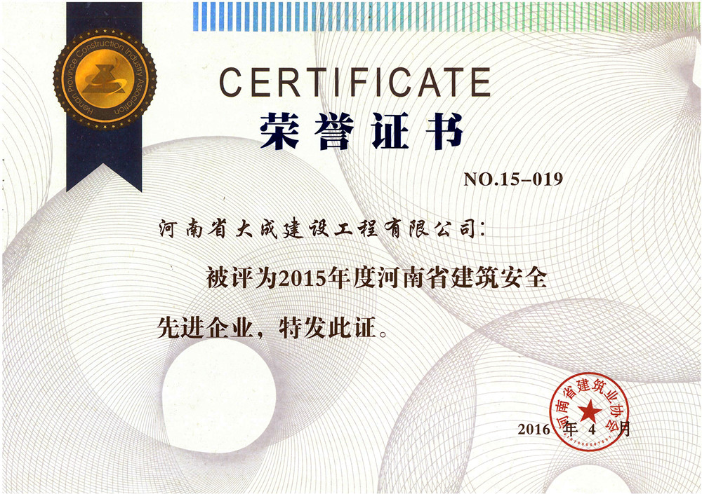 河南省建筑安全先進企業