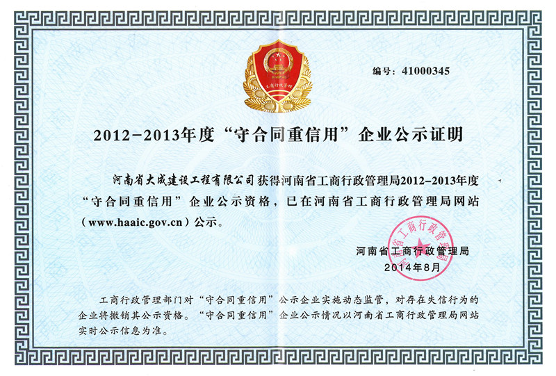 "中國建筑業最具成長性百強企業"、"全國優秀施工企業"、"河南省建筑業綜合實力前20強"、全國建筑業精品網站