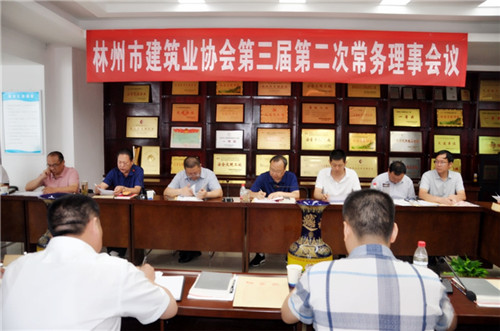 6月20日上午,林州市建筑業協會會長候斌率領協會副會長、常務理事單位于我集團公司總部會議室召開林州市建筑業協會第三屆第二次常務理事會議。林州市建管局付志強局長、常江海副局長參加會議,會議由會長侯斌主持。